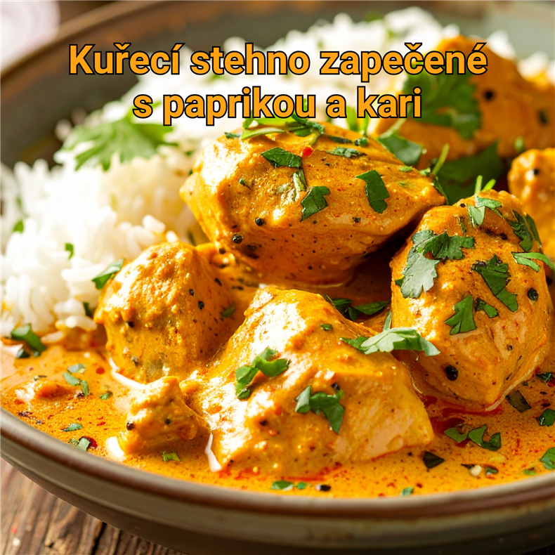 Kuřecí stehno zapečené s paprikou a kari + malá porce rýže