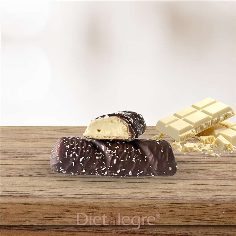 Čokoláda se sladidly (22%) [kakaová hmota, potravinová vláknina (dextrin, inulin, oligofruktóza), kakaové máslo, sladidlo: erytritol (E968), odtučněné kakaové prášky (min. 6%), emulgátor: sojový lecitin (E322), přírodní vanilkové aroma, sladidlo: steviol-glykosidy (E960a)], mléčné bílkoviny, slunečnicový olej s vysokým obsahem oleje, fruktooligosacharidy, bílá čokoláda se sladidly (6,8%) [kakaové máslo, plnotučné mléko, emulgátor: sojový lecitin (E322), sladidlo: maltitol (E965), přírodní vanilkové aroma], hydrolyzovaný kolagen, kakaové máslo, rýžová mouka, bramborový škrob, plnotučné mléko, strouhaný kokos (0,6%), emulgátor: slunečnicový lecitin (E322), kukuřičný škrob, quinoa mouka, vanilkový extrakt, sladidlo: sukralóza (E955), aroma, prášek do pečiva: hydrogenuhličitan sodný (E500ii), hydrogenuhličitan amonný (E503ii).