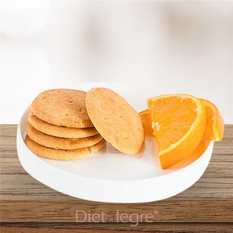 Kulaté sušenky s příchutí pomeranče s vysokým obsahem bílkovin a vlákniny, se sladidly,