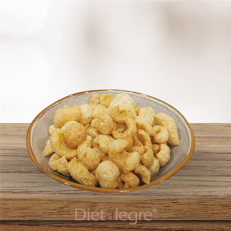 Vepřová kůže vyčištěná, vytříděná, nakrájená, dehydrovaná a částečně odtučněná. Smažené ve vlastním tuku a