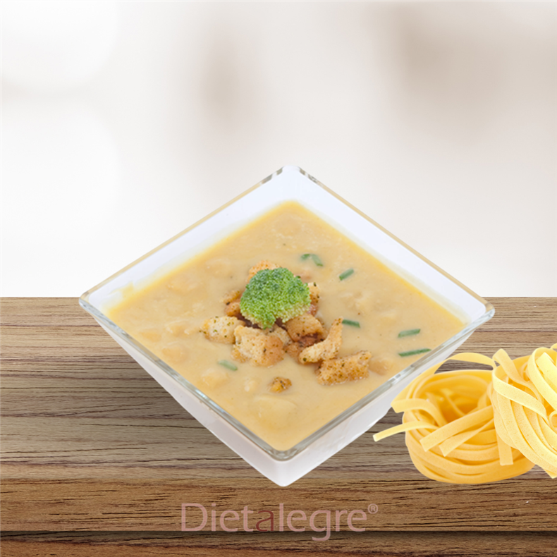 Prášková zmes na prípravu polievky s vysokým obsahom bielkovín, s nízkym obsahom cukru, so sladidlami,