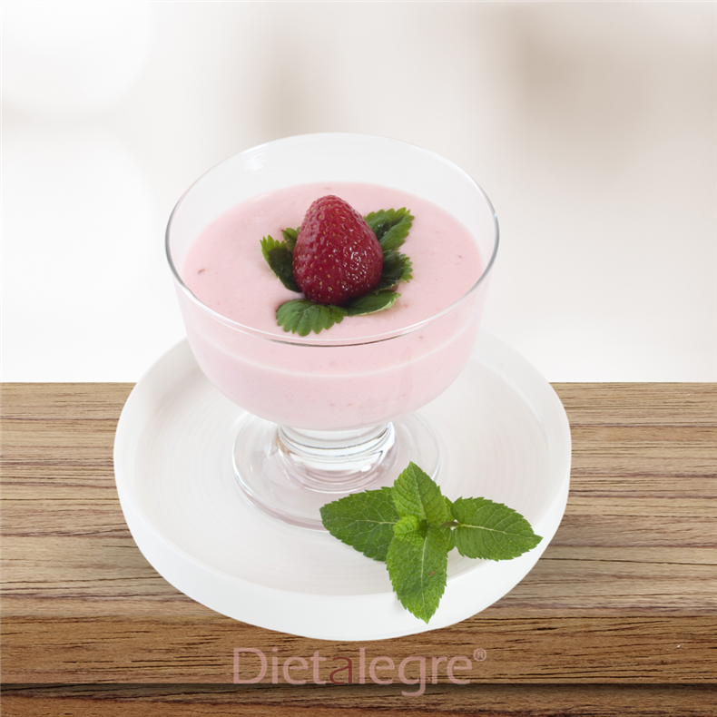 Zloženie: mliečne bielkoviny (slnečnicový lecitín E322); modifikovaný škrob E1414; aróma (jahoda, jogurt,