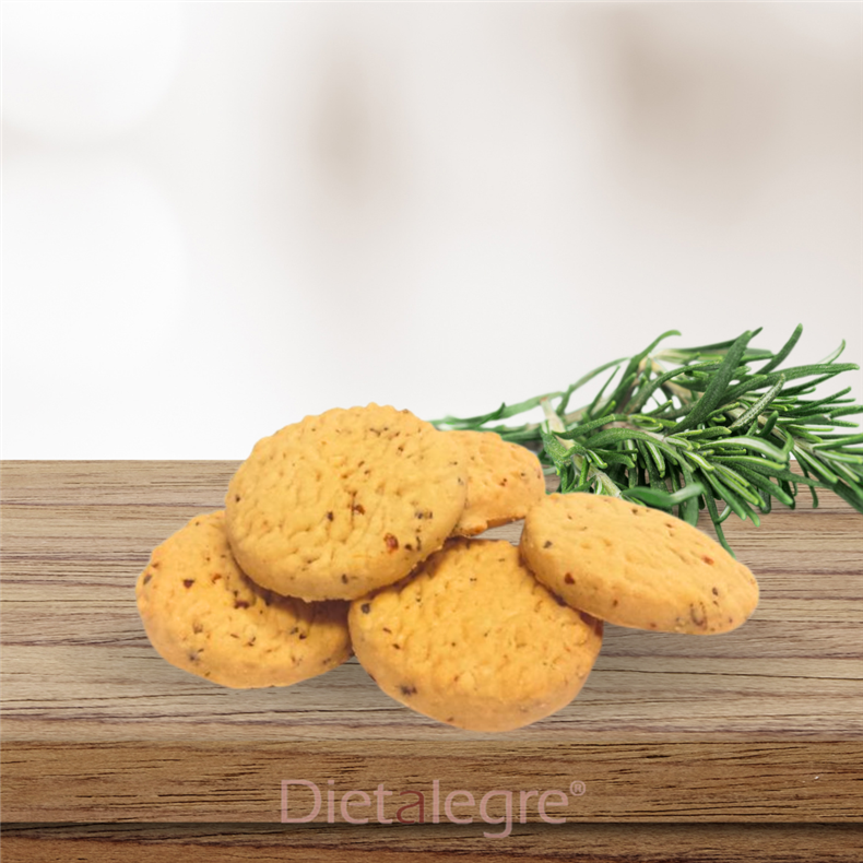 Rozmarínové slané krekry, balené v porciách po 33 g s vysokým obsahom bielkovín a vlákniny, s nízkym obsahom tuku a cukru, ktoré môžu byť súčasťou diéty na reguláciu telesnej hmotnosti.